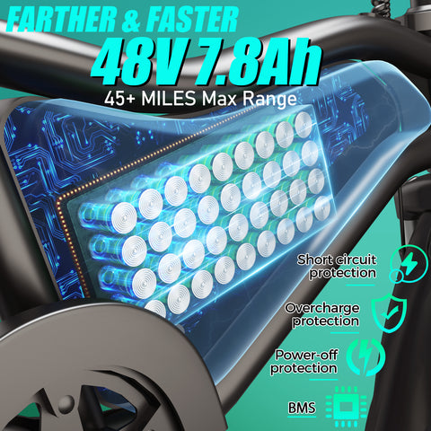 【Extended Range of 45+ Miles】Our ebikes have built in 48V 7.8Ah battery, ensuring an impressive range that can cover over 45 miles on a single charge. Never worry about distance with ANCHEER StreetRider e bike.